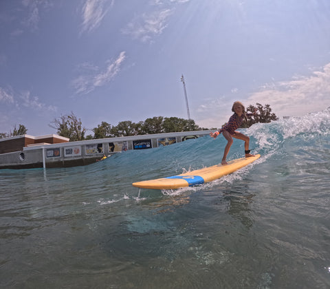 As for boards, I rode my 5’3 Dart Swallow Tail. The Waco wave is pretty high-performance so it felt like it fit in the tight pockets better with its narrow tail. Matt, Margaret and Arianne shared a 5’6 Cypress and a 5’6 Dharma Mod. The kids rode the provided foamies in their “Beginner” sessions and the older boys tried each setting, including pro on their micro Bing Cypress boards.